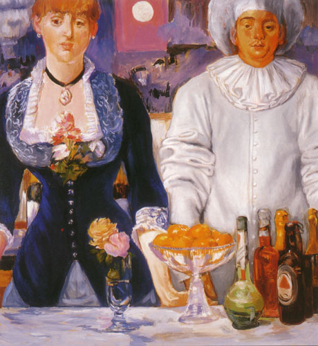 Full frontal French. Suzon and Gilles seemed to reach out to each other across time. Changing the chapeau of Gilles to a chef's hat, puts them both at work in a French restaurant or perhaps a fancy catering service. The menu they are offering at the moment seems to be exclusively alcoholic, but I couldn't resist using the title of one of my old television programs from the Museum of Fine Arts in Boston.