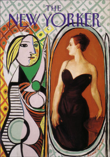 One of the innovations that Tina Brown brought as editor to The New Yorker in 1992 was the notion that the subject of the cover should as often as possible relate to the content of the magazine. The art director, who knew my work, told me that an upcoming issue would prominently feature an essay about fashion and asked if I had any paintings that might relate to that topic. The New Yorker had played such a major role in the after-school side of my formation that I was determined not to miss the chance to be a part of it. I had always wanted to do something with Picasso's Girl with Mirror. Searching through art books, I auditioned a few women for the role of her startling mirror image before deciding on Sargent's notorious Madame X. When I reversed her direction, the two great profiles finally faced off. Feeling very up-to-date, I faxed a sketch of it to the magazine and got the OK. It appeared on the November 23, 1992, cover. It may have more to do with vanity and narcissism than fashion, except perhaps the fashions of the world of art. |